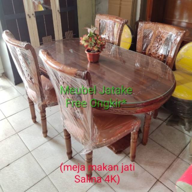 Jual Meja Makan Jati Jepara Salina Kaki Tengah 4 Kursi Jok Mewah Cantik Unik Indonesia Shopee Indonesia